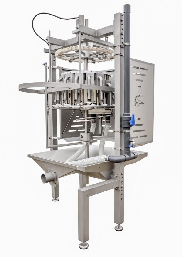 Maszyna jest przeznaczona do usuwania płuc z wypatroszonych tuszek kurczaków w następującym przedziale wagowym 0,8 -2,5 kg.