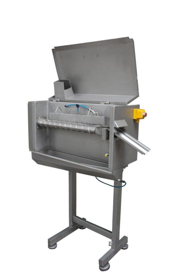 Pozbawiony serca i wątroby pakiet jelit, trafia przez lej wrzutowy na wałki, które ustawiają a następnie odcinają jelita od żołądka. Jelita ześlizgują się na rynnie spustowej wprost do miejsca przeznaczenia, a żołądek trafia na osobny ześlizg, który doprowadza go do miejsca docelowego.