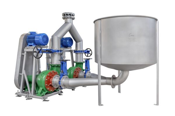 Pompa do pierza służy do transportu pierza pochodzącego z procesu skubania drobiu w zakładach ubojowych. Pierze musi być transportowane wraz z wodą.