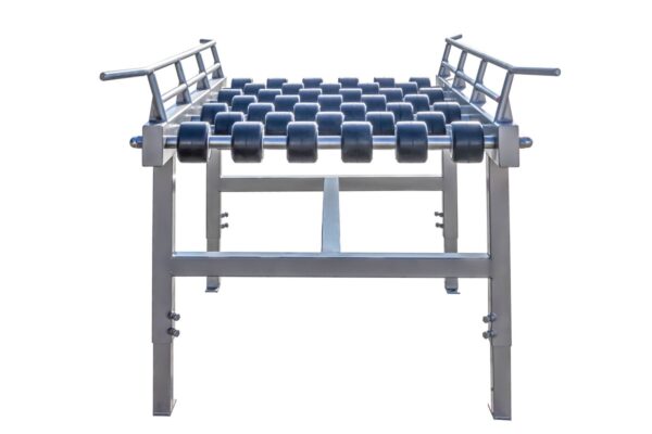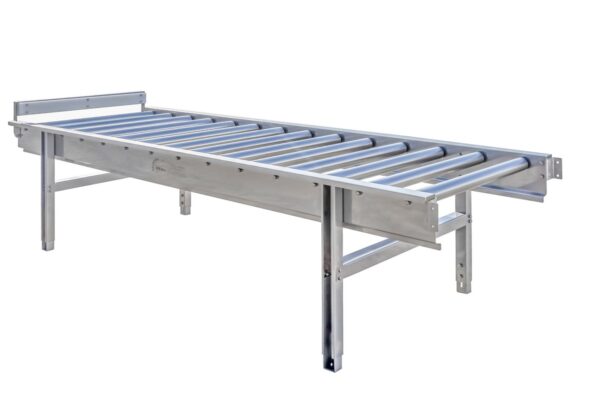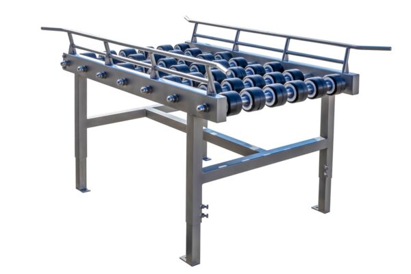 Przenośnik nie ma zainstalowanego napędu, natomiast odpowiednie pochylenie przenośnika uzyskane poprzez regulację wysokości nóg, zapewnia właściwe działanie samotoku elementu transportowanego. Transporter można zestawiać w dowolną długość z segmentów standardowych o długości 1000 mm, 2000 mm i łuku 90°. Na życzenie Klienta można wykonać segment o innej długości, a także można wykonać odpowiednie barierki zabezpieczające przed spadaniem transportowanych przedmiotów. Rolki mogą być wykonane ze stali nierdzewnej lub PVC, ponadto wszystkie są