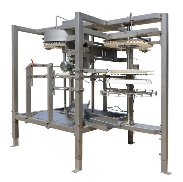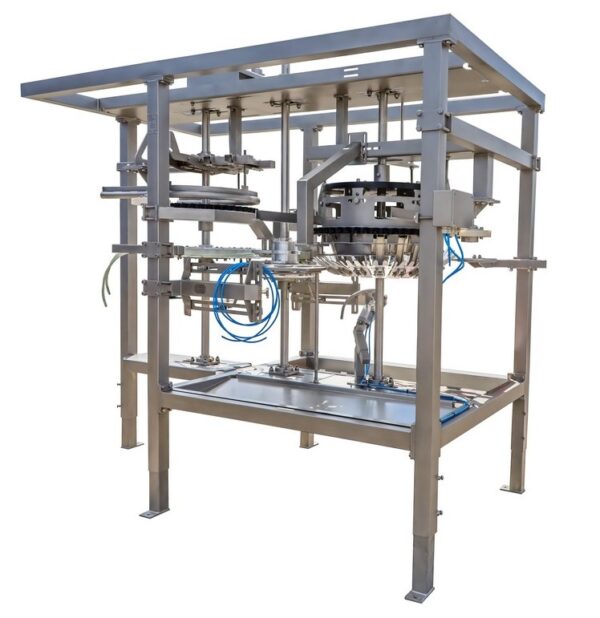 Przewieszacz tuszek służy do automatycznego obcięcia łap i przewieszenia tuszki z linii uboju na linię patroszenia. Zakres wagowy kurczaków to 800 g do 2500 g, przy czym należy pamiętać, że dla prawidłowego działania przewieszacza waga partii kurczaków powinna być porównywalna.
